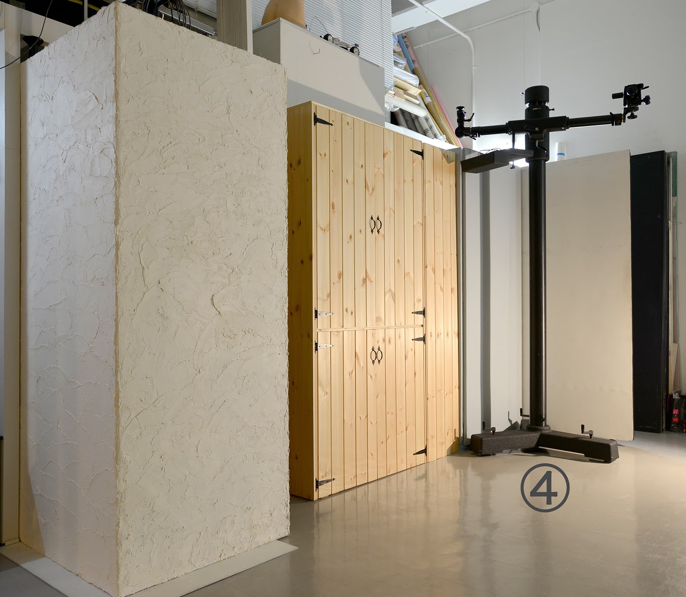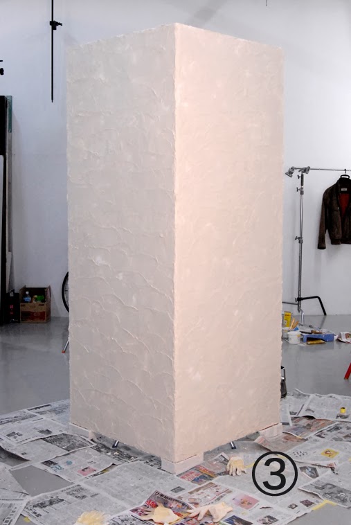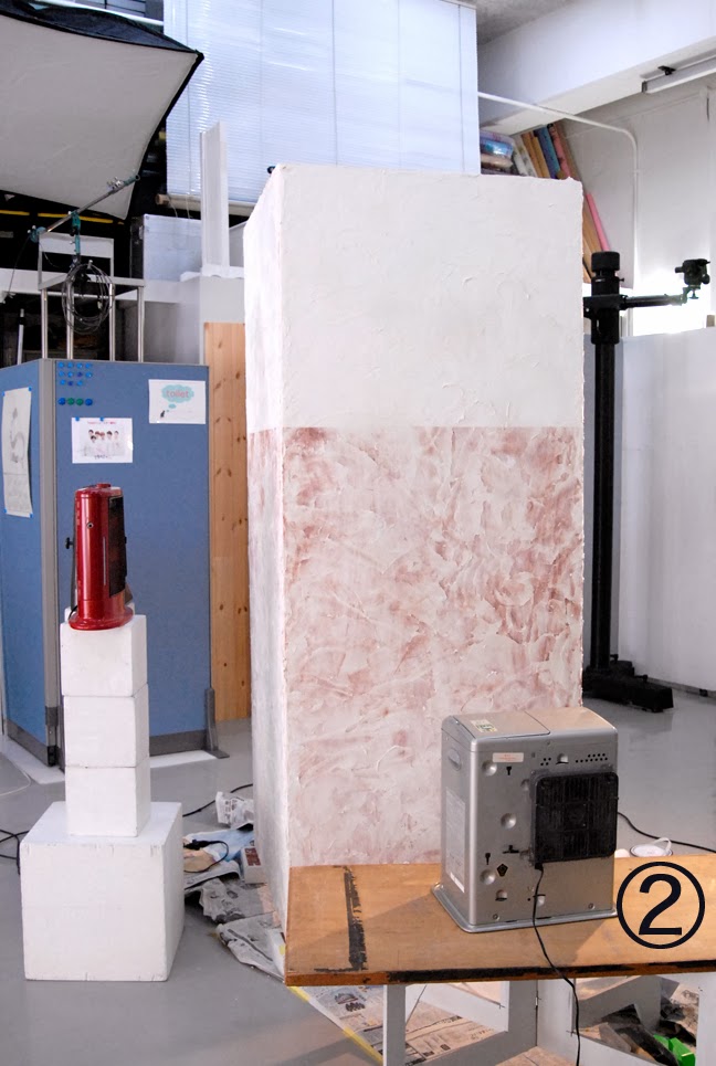 ベニヤ板で壁を作り珪藻土で仕上げるという計画でスタート。ホームズのおっちゃんに”ベニヤに珪藻土塗ったらアクでますよ〜”とアドバイスしてもらったのにアク止め塗ったらいけるやろ〜と軽く考えて珪藻土塗ってやれやれと思い、次の日スタジオ入ってびっくり!!真っ白ないい感じの壁を想像してたら②茶色のまだら〜 え〜〜何これ??? あっと驚くタメゴロウ〜(毎回昭和のギャグで統一してます。BOSSリクエストのため)アクってまさかこんなに出るとは予想以上。アドバイスを聞かなかった事を反省しつつ珪藻土メーカー(丸京石灰)に電話すると開発のおっちゃんは、③”もう一度アク止めを塗って完全に乾燥させてからハイフレックスという接着を助ける薬剤塗ってから再度、珪藻土塗ってください。もし上手く行かなければ又電話してくださいね〜”ととても親切に教えてくれた(涙)やっぱりプロの言う事は素直に聞きましょう!!!と失敗しながら学びました。 プロの大工さんの凄さも身を持って知りました。④そしてやっと出来上がり!