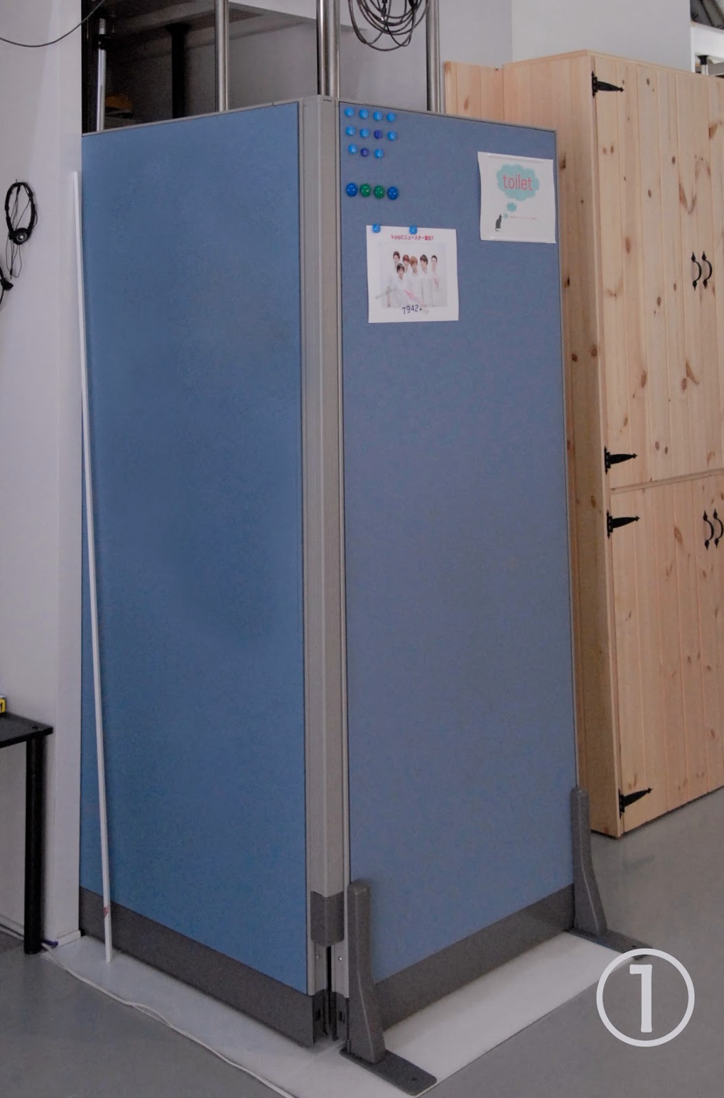 スタジオリフォーム第2弾。トイレ入る所の①衝立てがどうも合ってなくてずっと気になっていた。。大変そうなのでなかなか手を付けれなかったが今回挑戦。