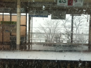 予想はしていたが、あまりの雪景色に電車大丈夫か?と心配になる。